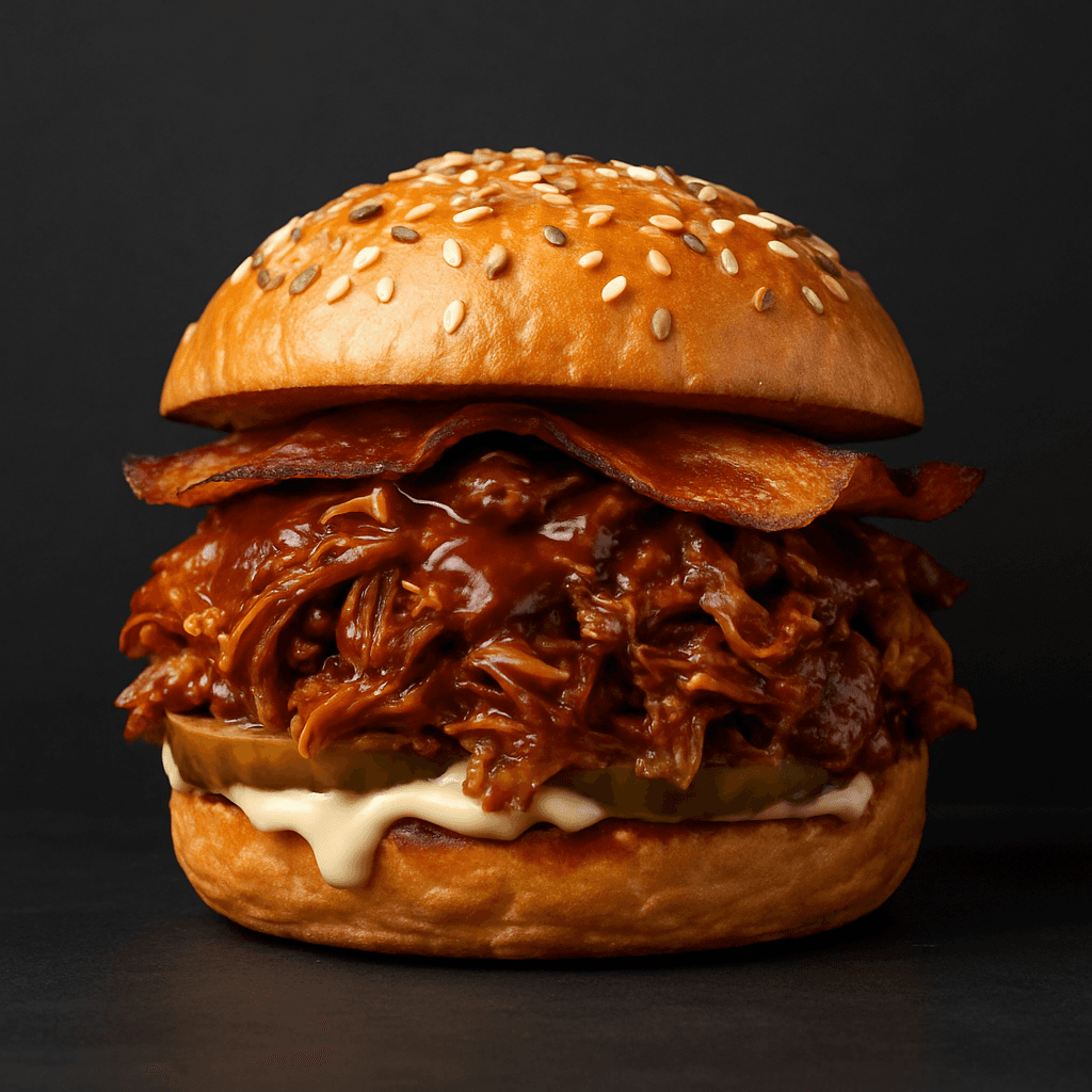 Tender pulled pork on a toasted bun, served with fries an a drink