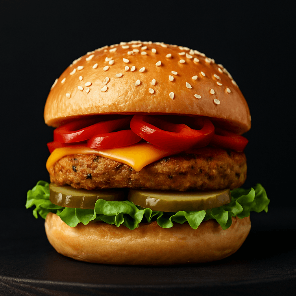 Juicy beef patty, fresh lettuce, tomatoes, onions, pickles, and our special house sauce.